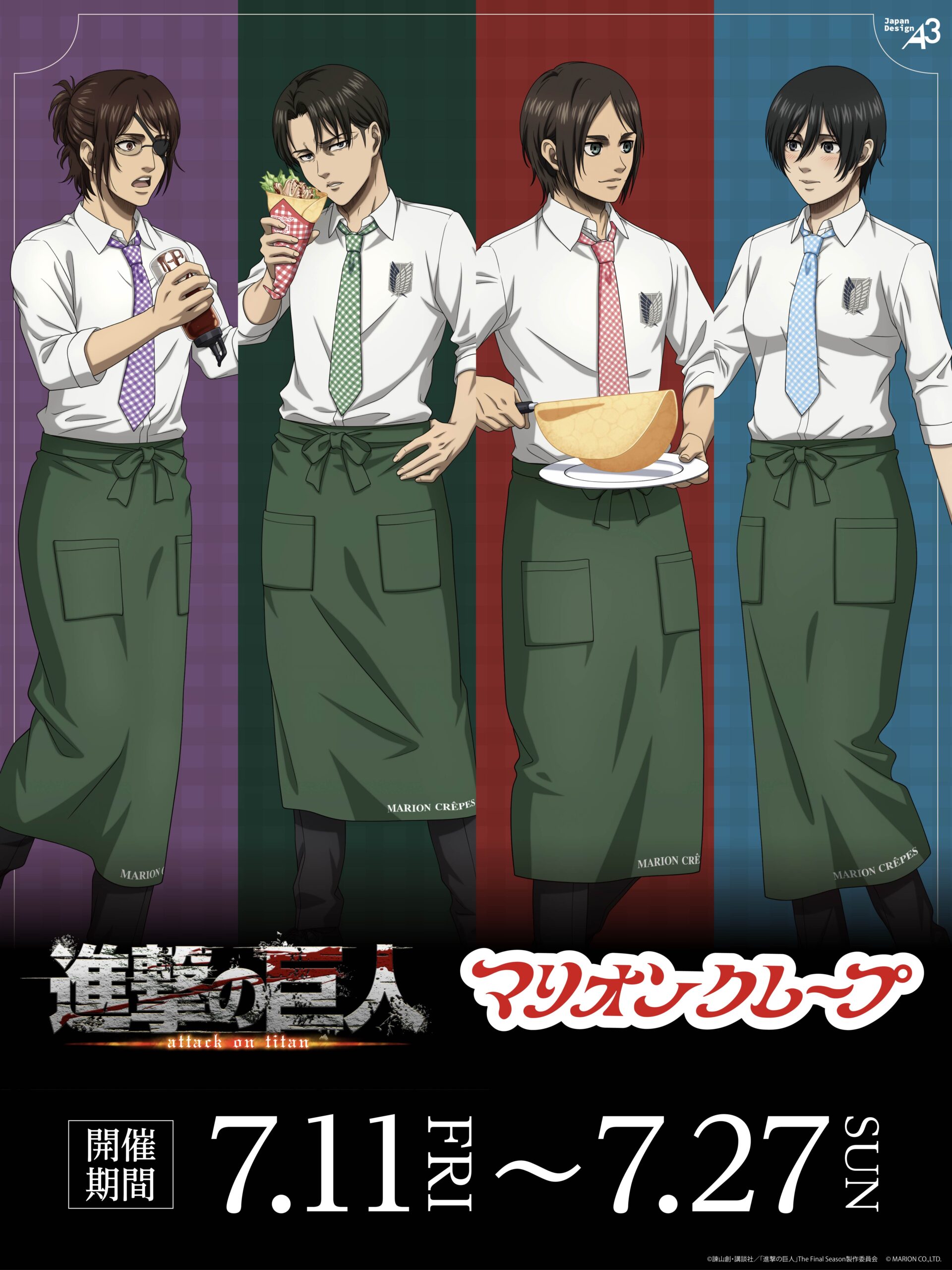 2025年7月11日(金)~7月27日(日)の期間、TVアニメ『進撃の巨人』とマリオンクレープのコラボを開催いたします。