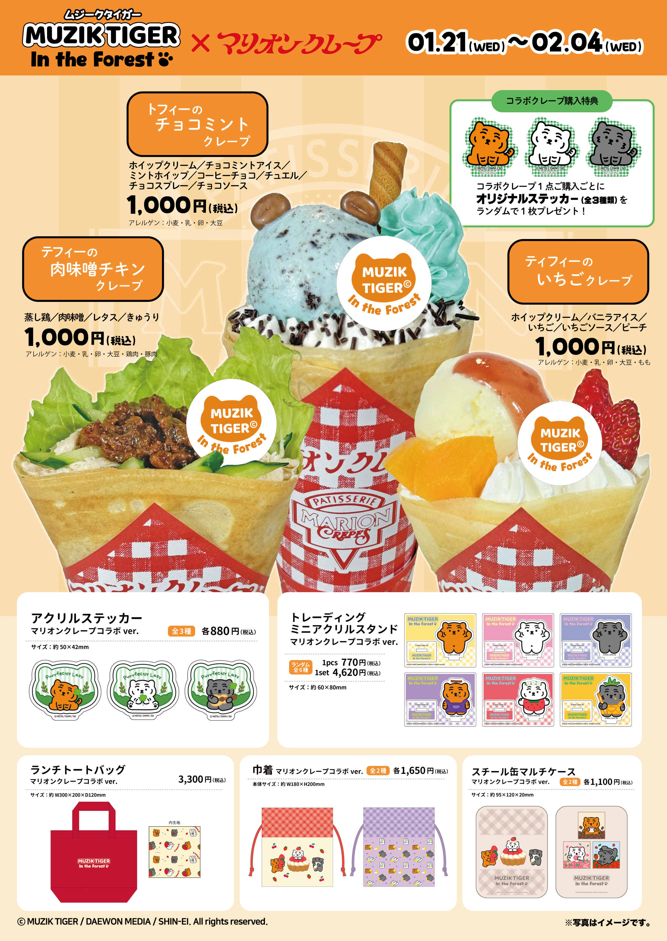 2026年1月21日(水)~2月4日(水)の期間、アニメ『MUZIK TIGER In the Forest』とマリオンクレープのコラボを開催いたします。