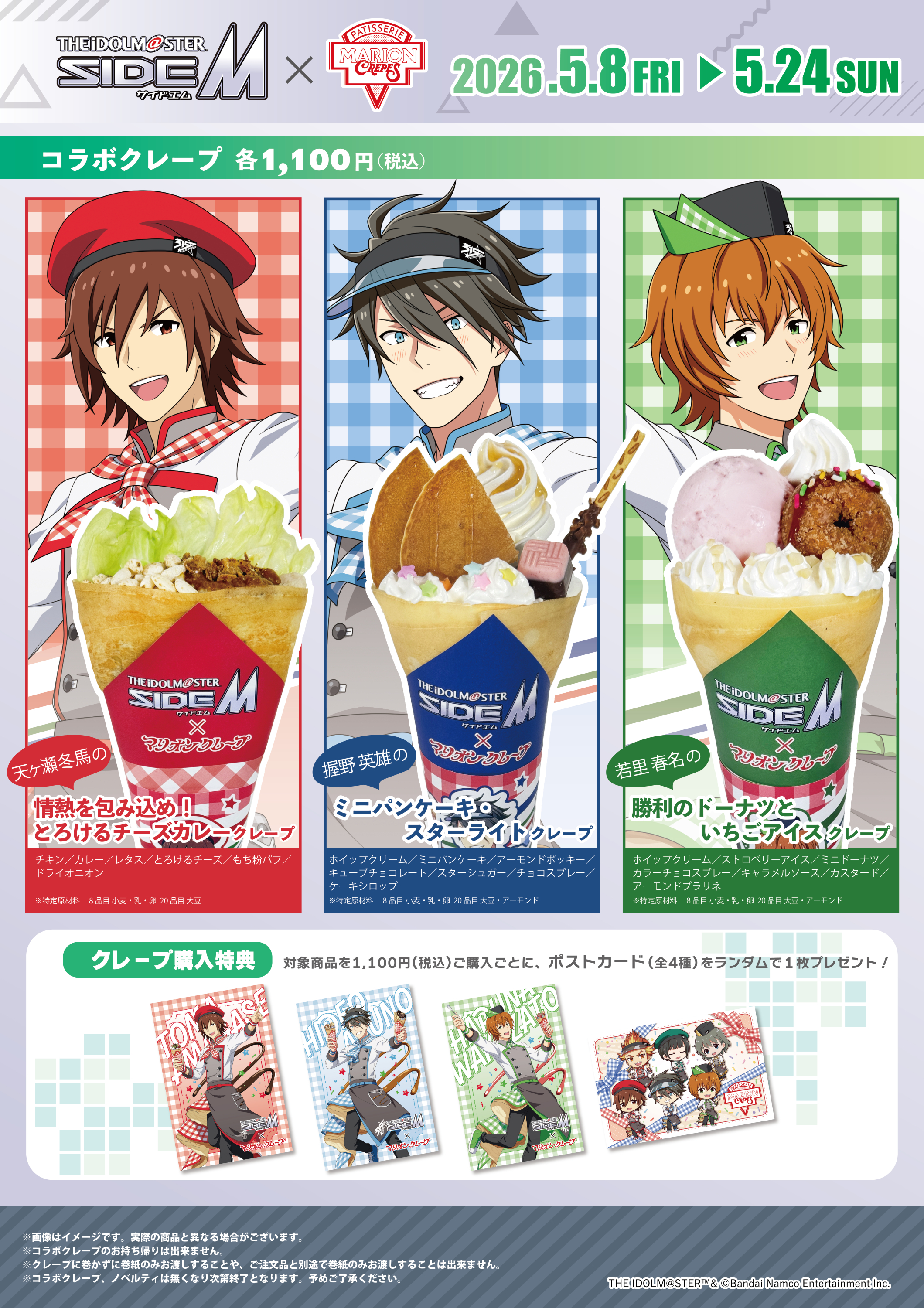 「アイドルマスター SideM」とマリオンクレープのコラボを開催いたします。