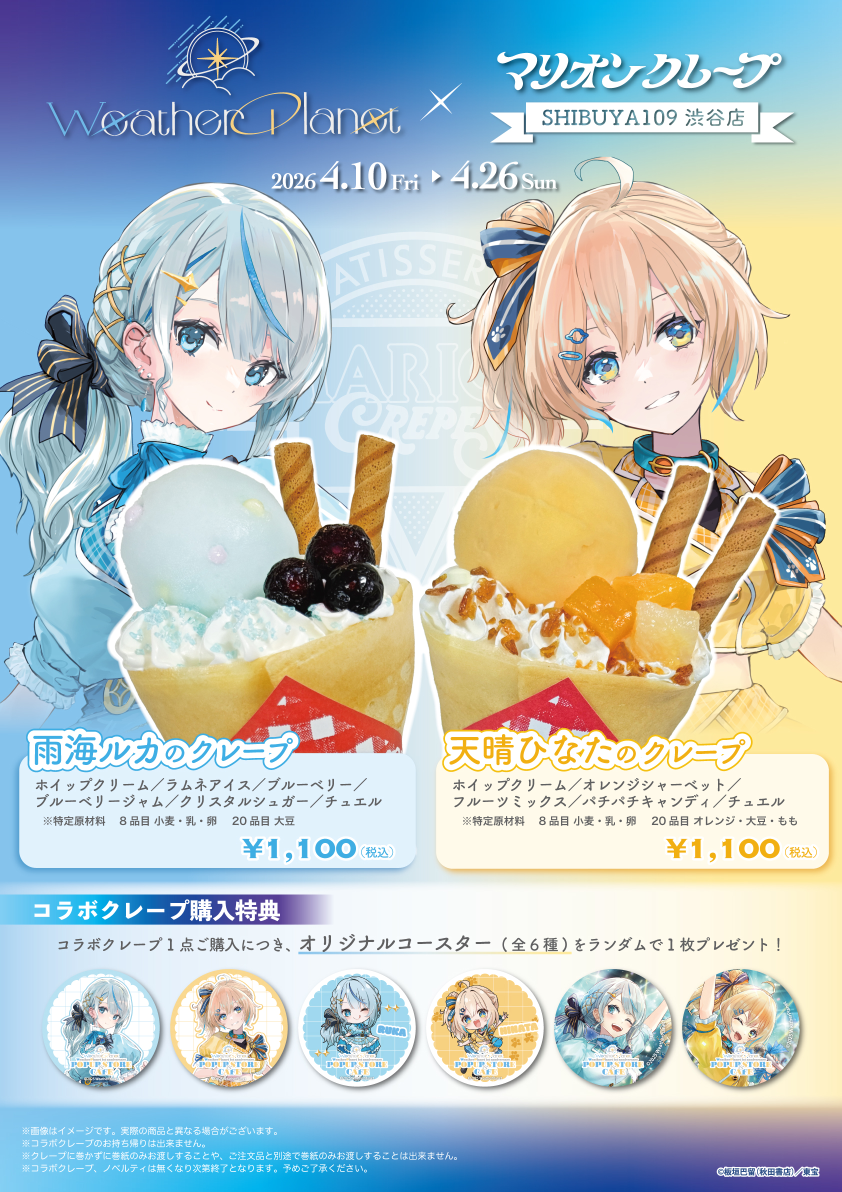 『WeatherPlanet 1st anniversary POP UP STORE』の開催を記念して2026年4月10日(金)~4月26日(日)の期間、コラボクレープを販売いたします!