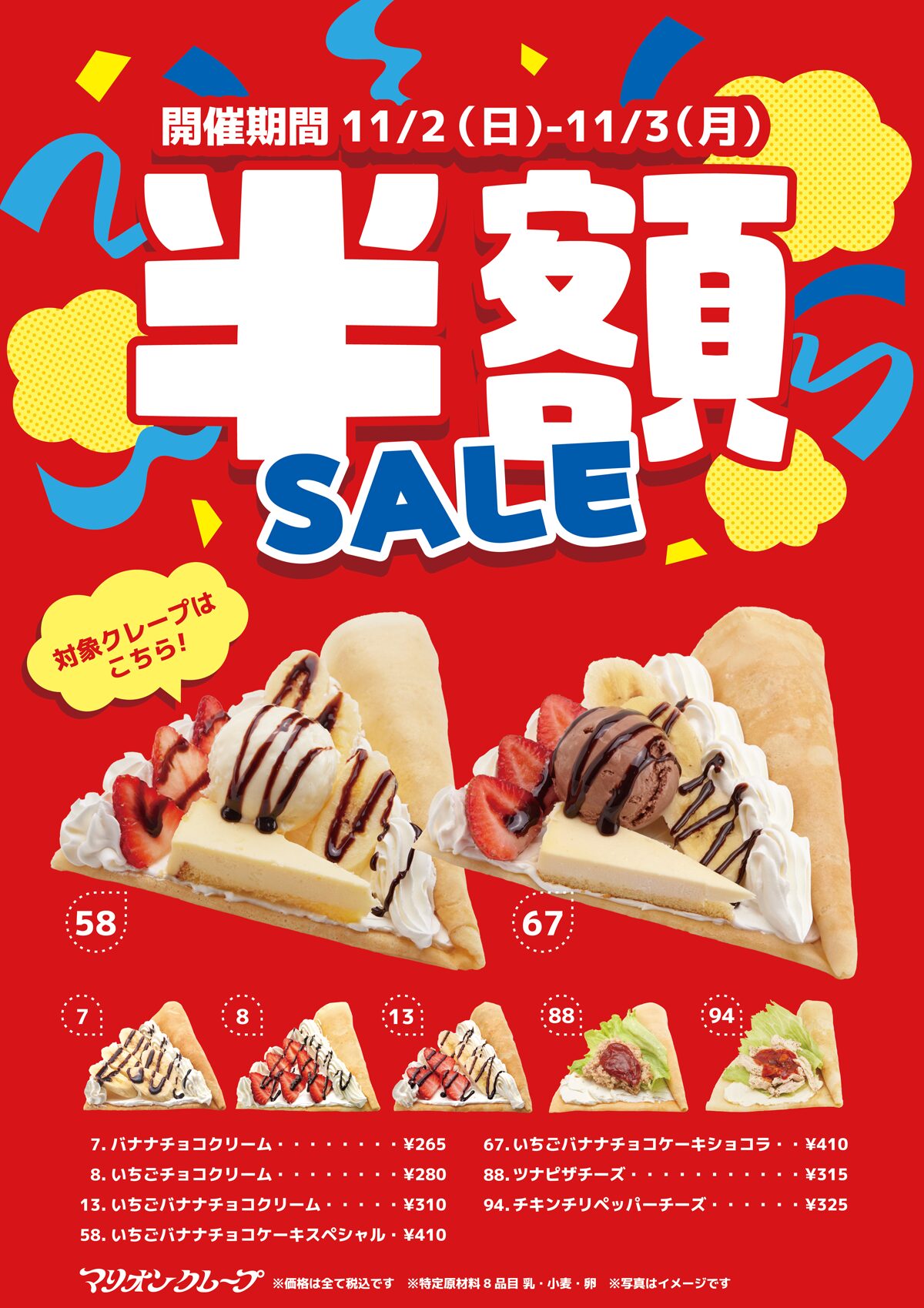 日頃の感謝を込めてクレープ半額セールを実施します!