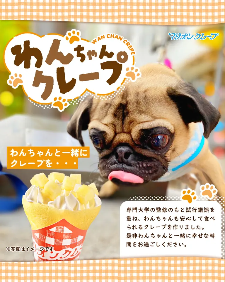 さらに、大切な家族であるわんちゃんにも楽しんでもらえる、わんちゃん用クレープもご用意しております!
