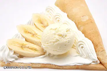 冷たいアイスクリームとの組み合わせでバナナ&ホイップもまた一味ちがった感覚に。